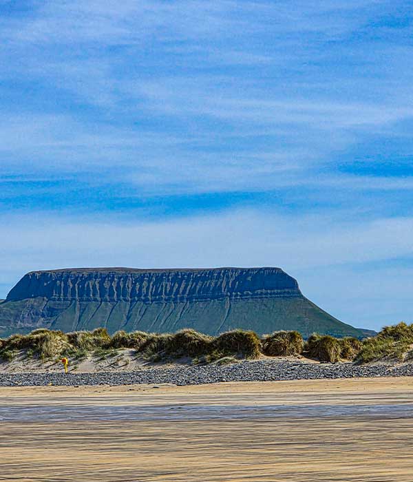 Highlight: Vista panoramica sul maestoso Benbulben (526m), la montagna “tavola” simbolo di Sligo, e sulle pendici del Truskmore (647m), la vetta più alta dei monti Dartry.